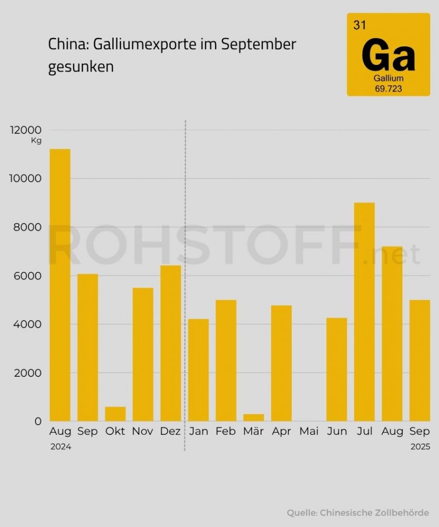 • Chinas Exporte von Gallium und Germanium im September deutlich gesunken  20. Oktober 2025