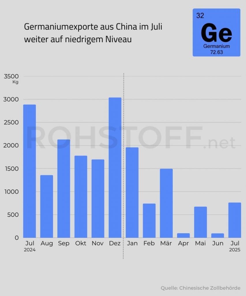 Germaniumexport bleibt im Juli auf historisch niedrigem Niveau – deutlich weniger Ausfuhren als bei Gallium.